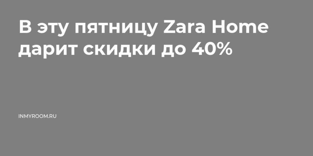 В эту пятницу, 27 ноября, на сайте Zara Home будут действовать скидки до 20% на всю линейку товаров для дома. Исключение составят лишь те позиции, которые уже участвуют в каких-либо акциях. Любителей совершать покупки «вживую», а не через интернет также ждет приятный сюрприз от Zara Home: во всех магазинах (включая интернет-ресурсы) более 500 товаров будет распродано со скидками до 40%.