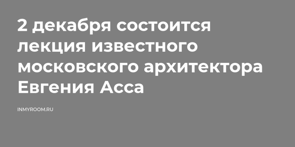 2 декабря состоится лекция известного московского архитектора Евгения Асса