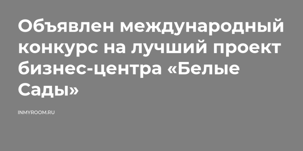 Объявлен международный конкурс на лучший проект бизнес-центра «Белые Сады»