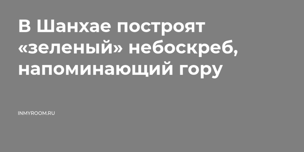 В Шанхае построят «зеленый» небоскреб, напоминающий гору