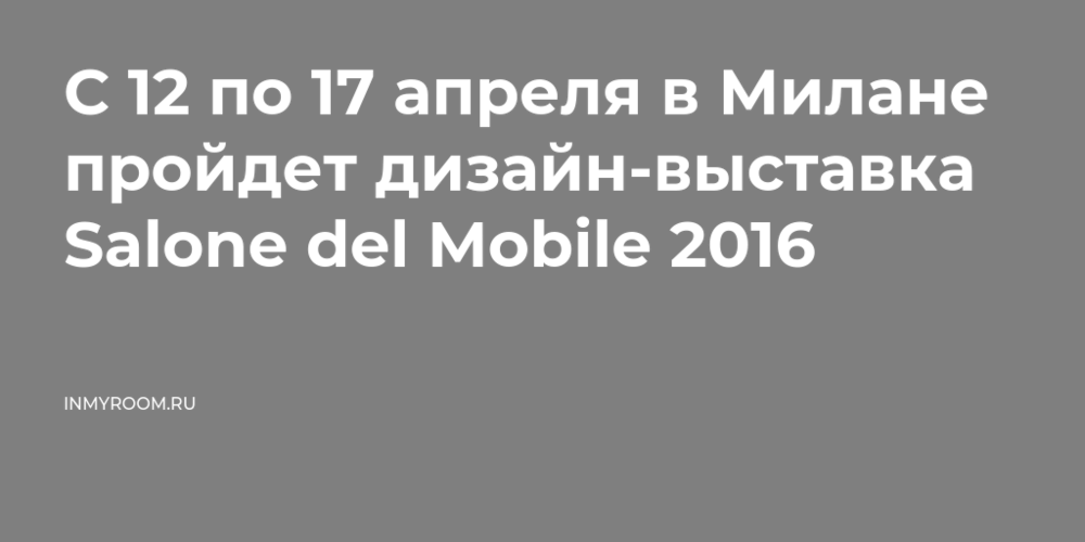 С 12 по 17 апреля в Милане пройдет дизайн-выставка Salone del Mobile 2016