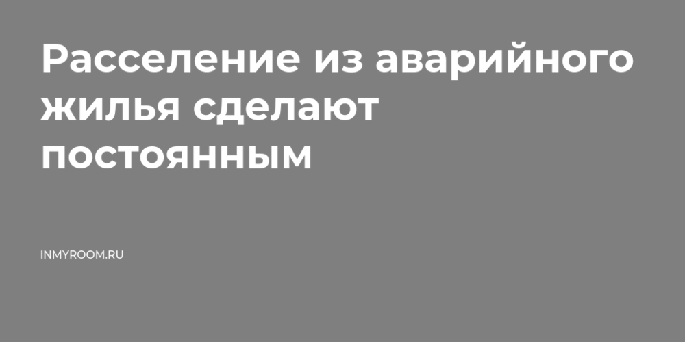 Премьер-министр Дмитрий Медведев распорядился подготовить проект постоянного механизма ликвидации аварийного жилья, сообщает «Коммерсант». Белый дом разрабатывает соответствующий механизм на период после 2017 года, когда закончится действующая программа расселения такого жилья. Задумываются о порядке расселения и в Минстрое. Жильцам аварийных домов, признанных таковыми после 1 января 2012 года, предложили инвестировать свой земельный участок в новое жилье с доплатой. Сейчас, по оценкам Фонда содействия реформированию ЖКХ, насчитывается более 5 млн квадратных метров аварийного жилья, а к 2035 году ожидается еще больше: до 100 миллионов квадратов.