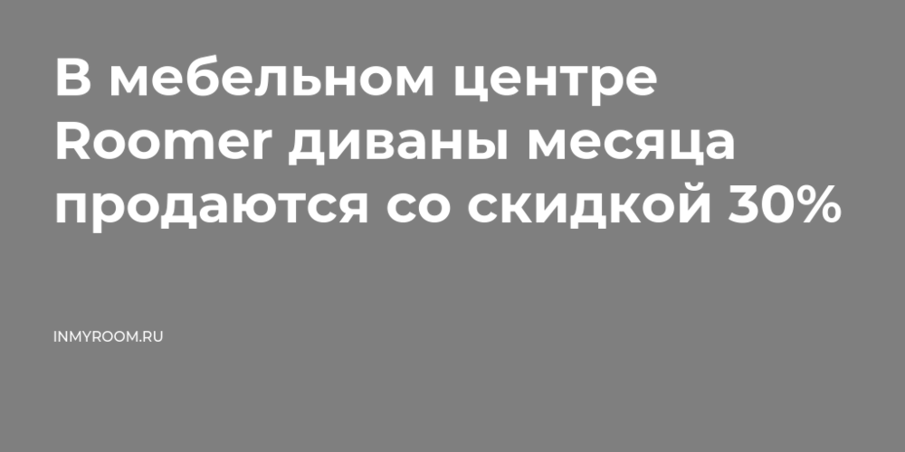 В мебельном центре Roomer диваны месяца продаются со скидкой 30%
