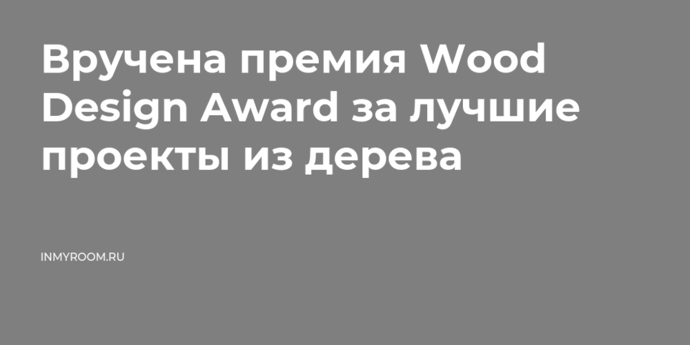 Вручена премия Wood Design Award за лучшие проекты из дерева