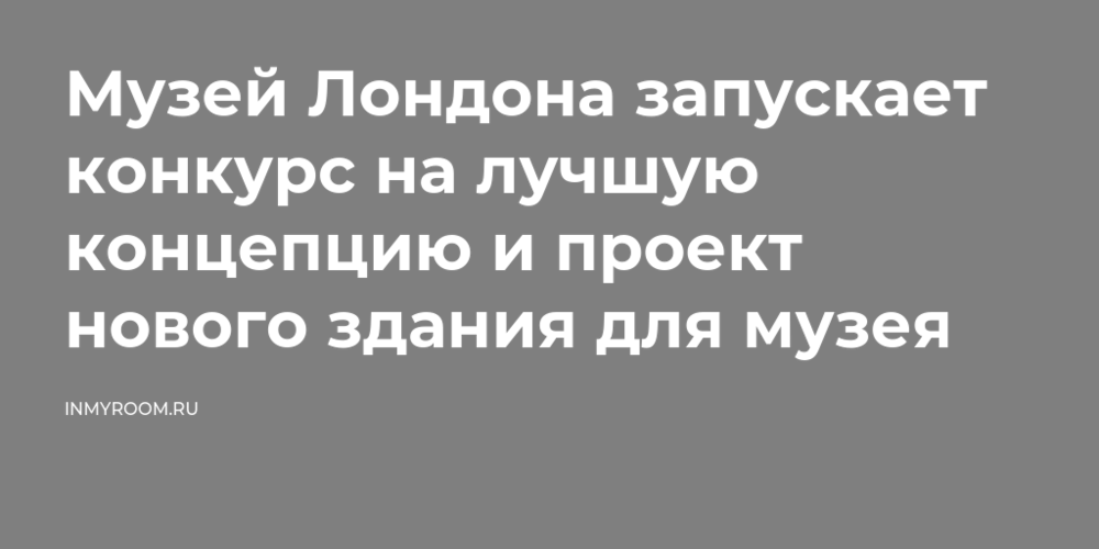 Музей Лондона запускает конкурс на лучшую концепцию и проект нового здания для музея