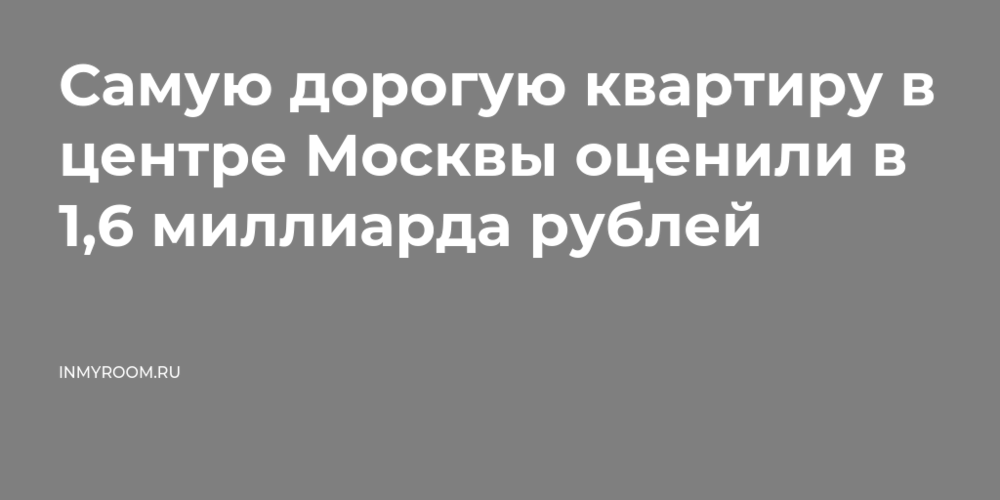 Самую дорогую квартиру в центре Москвы оценили в 1,6 миллиарда рублей