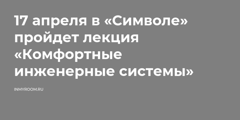 17 апреля в «Символе» пройдет лекция «Комфортные инженерные системы»