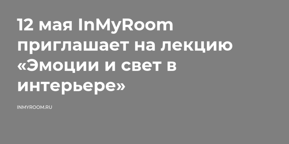 12 мая InMyRoom приглашает на лекцию «Эмоции и свет в интерьере»