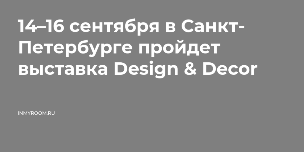 14–16 сентября в Cанкт-Петербурге пройдет выставка Design & Decor