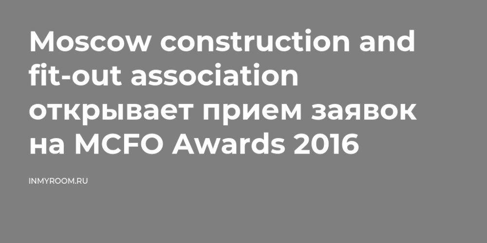 Moscow construction and fit-out association открывает прием заявок на MCFO Awards 2016