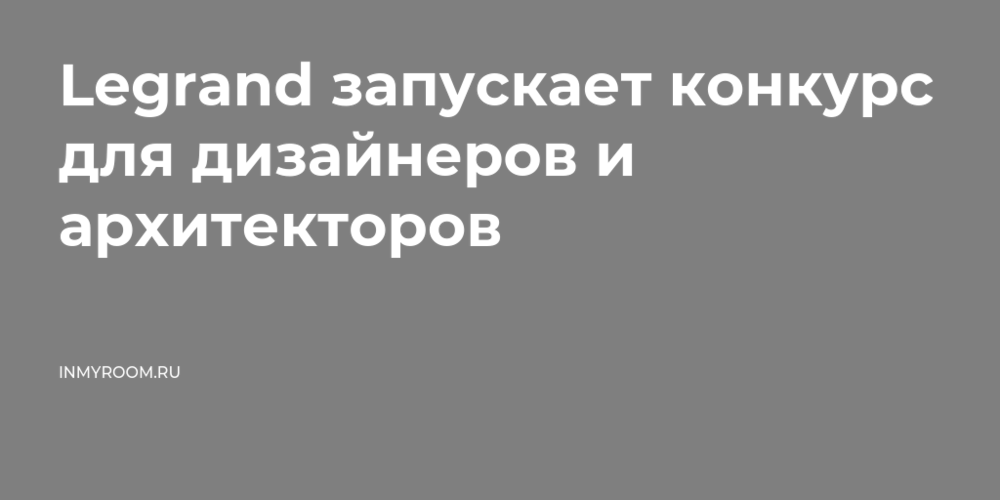 Legrand запускает конкурс для дизайнеров и архитекторов