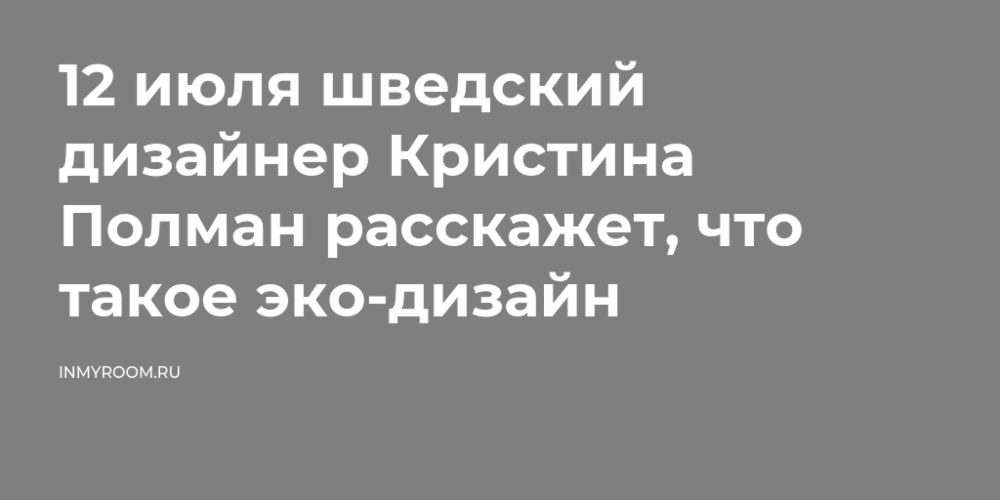 12 июля шведский дизайнер Кристина Полман расскажет, что такое эко-дизайн
