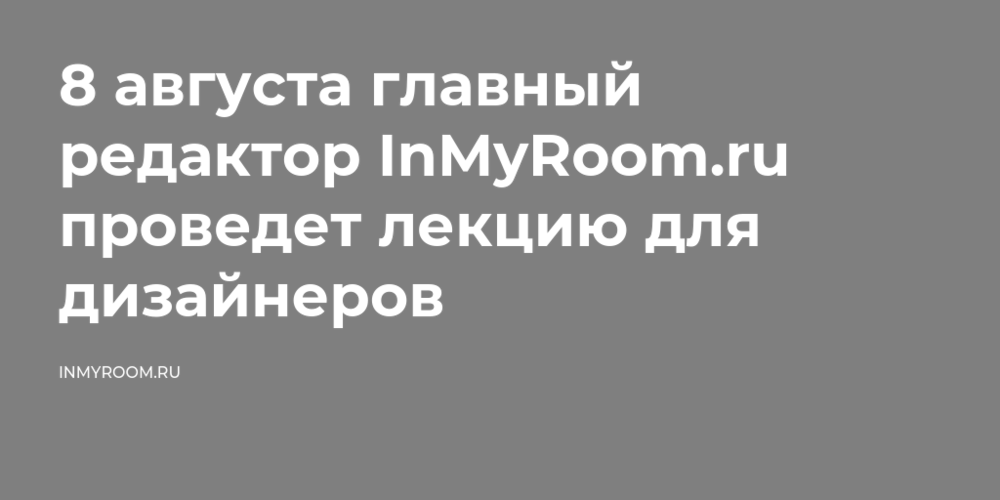8 августа главный редактор InMyRoom.ru проведет лекцию для дизайнеров