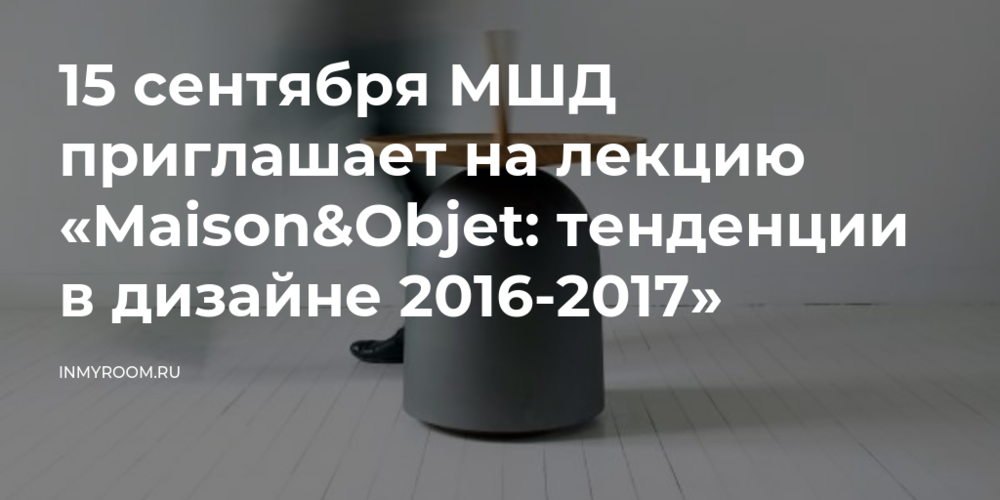 15 сентября МШД приглашает на лекцию «Maison&Objet: тенденции в дизайне 2016-2017»