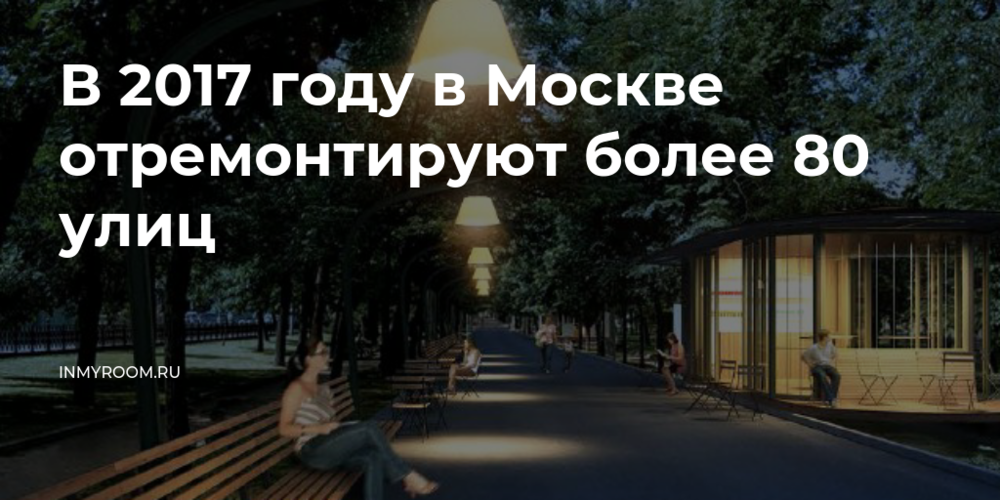 В 2017 году в Москве пройдет реконструкция более 80 улиц и 30 парков. А еще в этом году закончится ремонт Бульварного, Садового и Кремлевского кольца, Тверской улицы, а также улиц, которые прилегают к парку «Зарядье». Кроме того, в этом году в городе появится 50 новых парков.