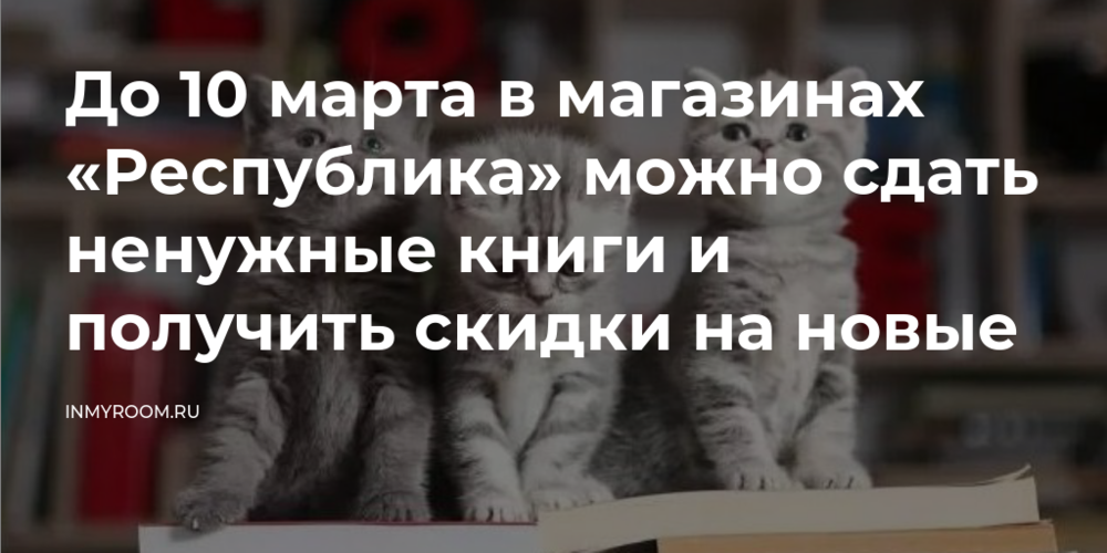 До 10 марта в магазинах «Республика» в Москве и Санкт-Петербурге (во всех магазинах, кроме Цветного и Take Away) можно сдать ненужные книги, а взамен получить скидку 20% на покупку новых. Подробности акции можно узнать здесь.