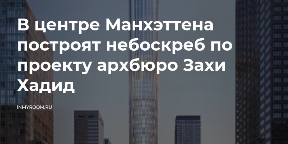 В центре Манхэттена построят небоскреб по проекту архбюро Захи Хадид