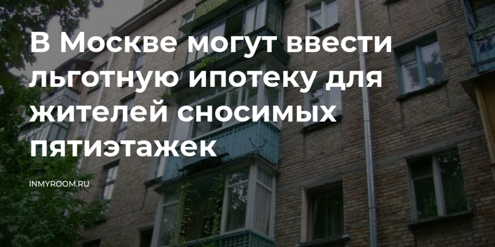 В Москве могут ввести льготную ипотеку для жителей сносимых пятиэтажек, пишет Lenta.ru. Жители хрущевок получат возможность переехать в более просторные квартиры, купив в кредит дополнительные площади, — если у них будет такое желание.