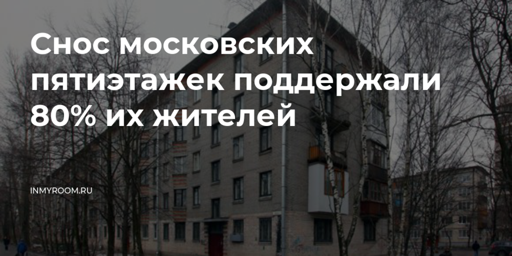 Программу сноса московских хрущевок поддерживают 80% граждан, проживающих в таких домах, пишет Lenta.ru. Против сноса пятиэтажек выступают 8% жителей, а еще 8% занимают нейтральную позицию. Негативно оценивающие программу граждане чаще всего говорят, что им нравятся их дома, а также опасаются переселения в другой район города.