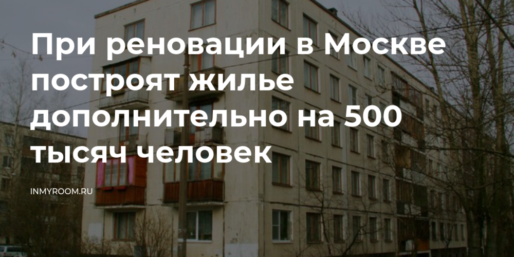 В рамках программы реновации хрущевок в Москве планируется построить жилье  дополнительно на 500 тысяч человек, которые также смогут купить квартиры в домах, построенных на месте снесенных пятиэтажек, пишет РБК.