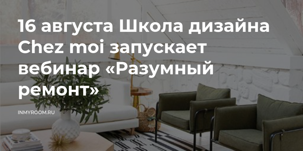 16 августа Школа дизайна Chez moi запускает вебинар «Разумный ремонт»