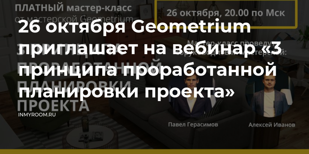 26 октября в 20:00 по московскому времени основатели и соруководители мастерской Geometrium Алексей Иванов и Павел Герасимов проведут вебинар «3 принципа проработанной планировки проекта».
