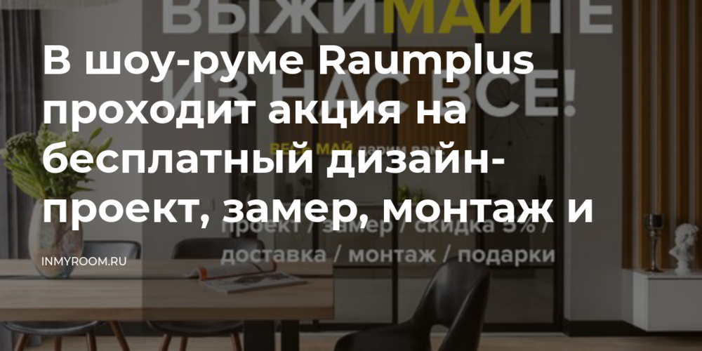 В шоу-руме Raumplus проходит акция на бесплатный дизайн-проект, замер, монтаж и доставку