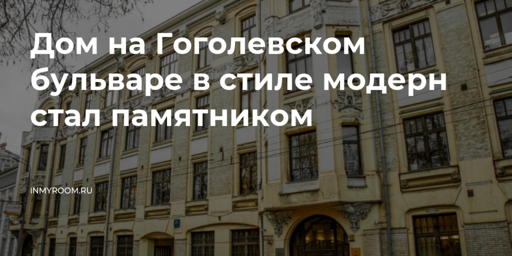 Дом на Гоголевском бульваре в стиле модерн стал памятником
