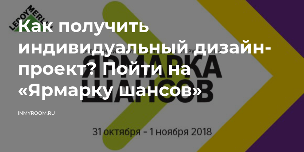 31 октября и 1 ноября «Экспоцентре» на Красной Пресне пройдет «Ярмарка шансов» — выставка современных товаров и новых решений в сфере ремонта и дизайна интерьеров, организованная компанией «Леруа Мерлен».