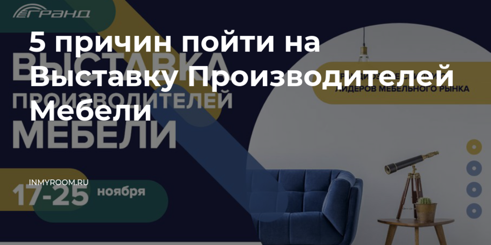 С 17 по 25 ноября в Мебельном Торговом Комплексе «ГРАНД» пройдет вторая ежегодная Выставка Производителей Мебели. Это уникальное событие, которое собирает крупнейших игроков отрасли и последние новинки российских и зарубежных компаний. В выставке примут участие более 500 брендов из 30 стран.