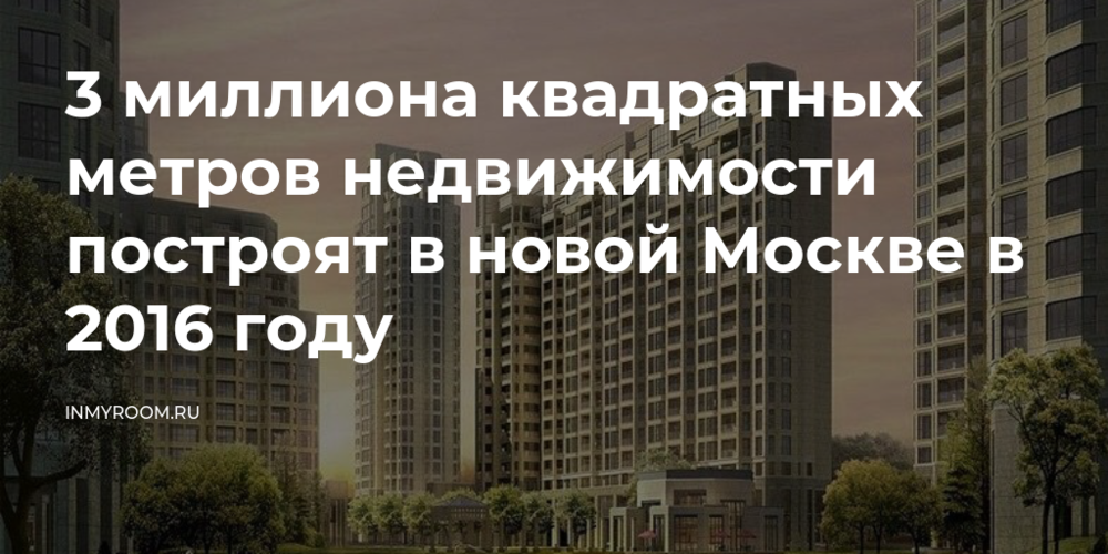 Около 3 миллионов квадратных метров недвижимости планируется построить в новой Москве в 2016 году, пишет РИА Новости. Об этом сообщил глава департамента развития новых территорий Москвы Владимир Жидкин.