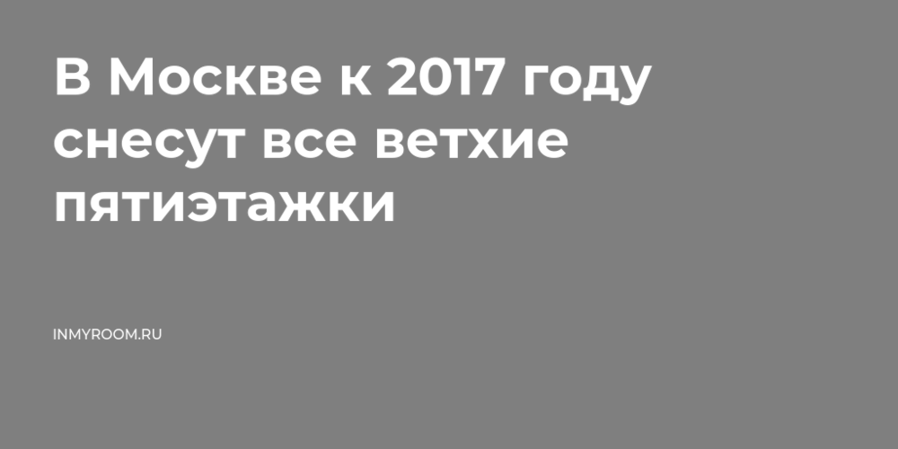 В Москве к 2017 году снесут все ветхие пятиэтажки