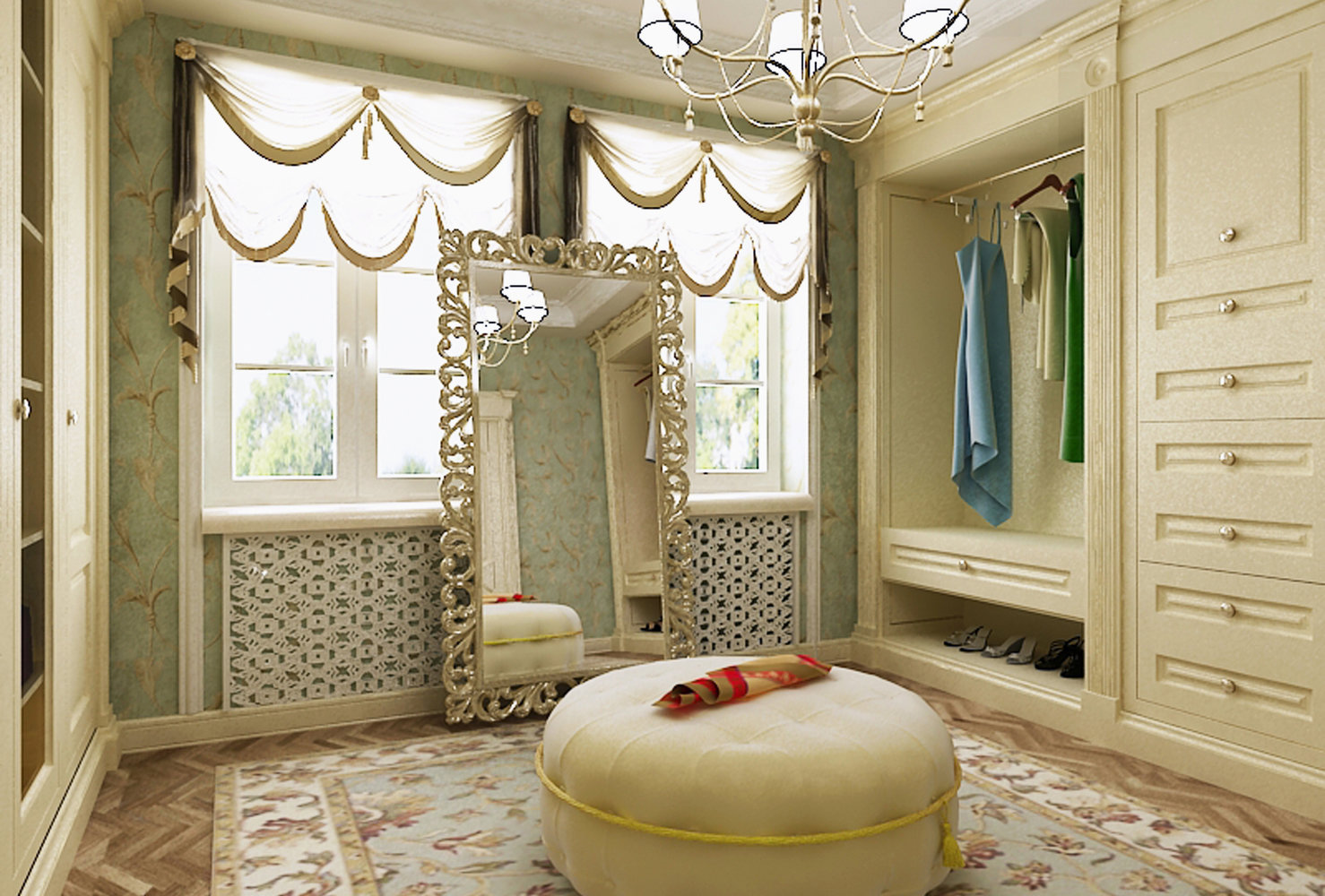 Гардеробная золотистого цвета в стиле Прованс и кантри — 2 фото дизайна интерьеров