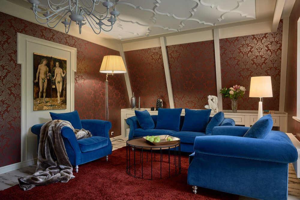 Гостиная темно-бордового цвета в стиле Классический — 253 фото дизайна интерьеров