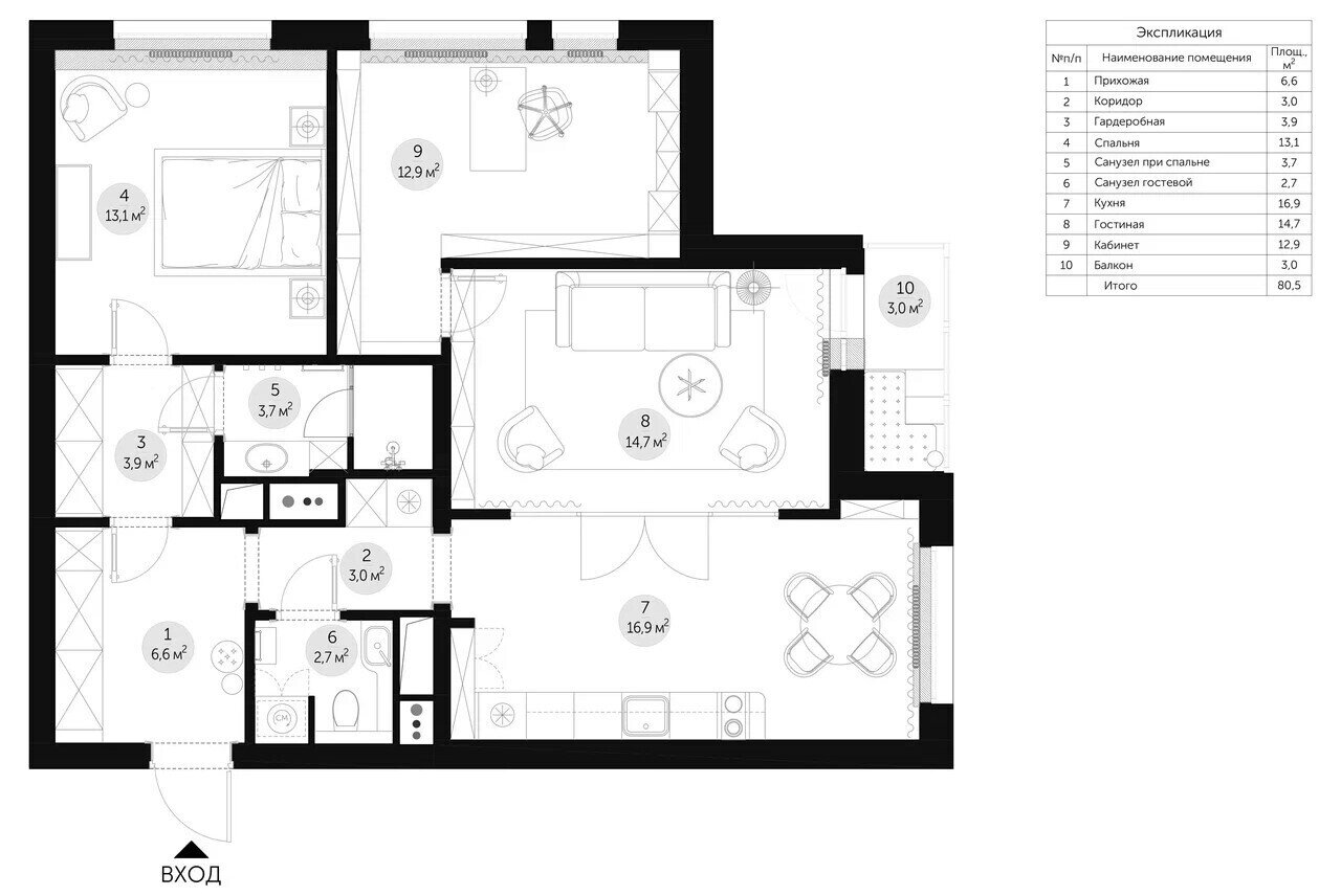 Фотография: Планировки в стиле , Классический, Квартира, Проект недели, Москва, 2 комнаты, 60-90 метров, Muzahouse – фото на INMYROOM