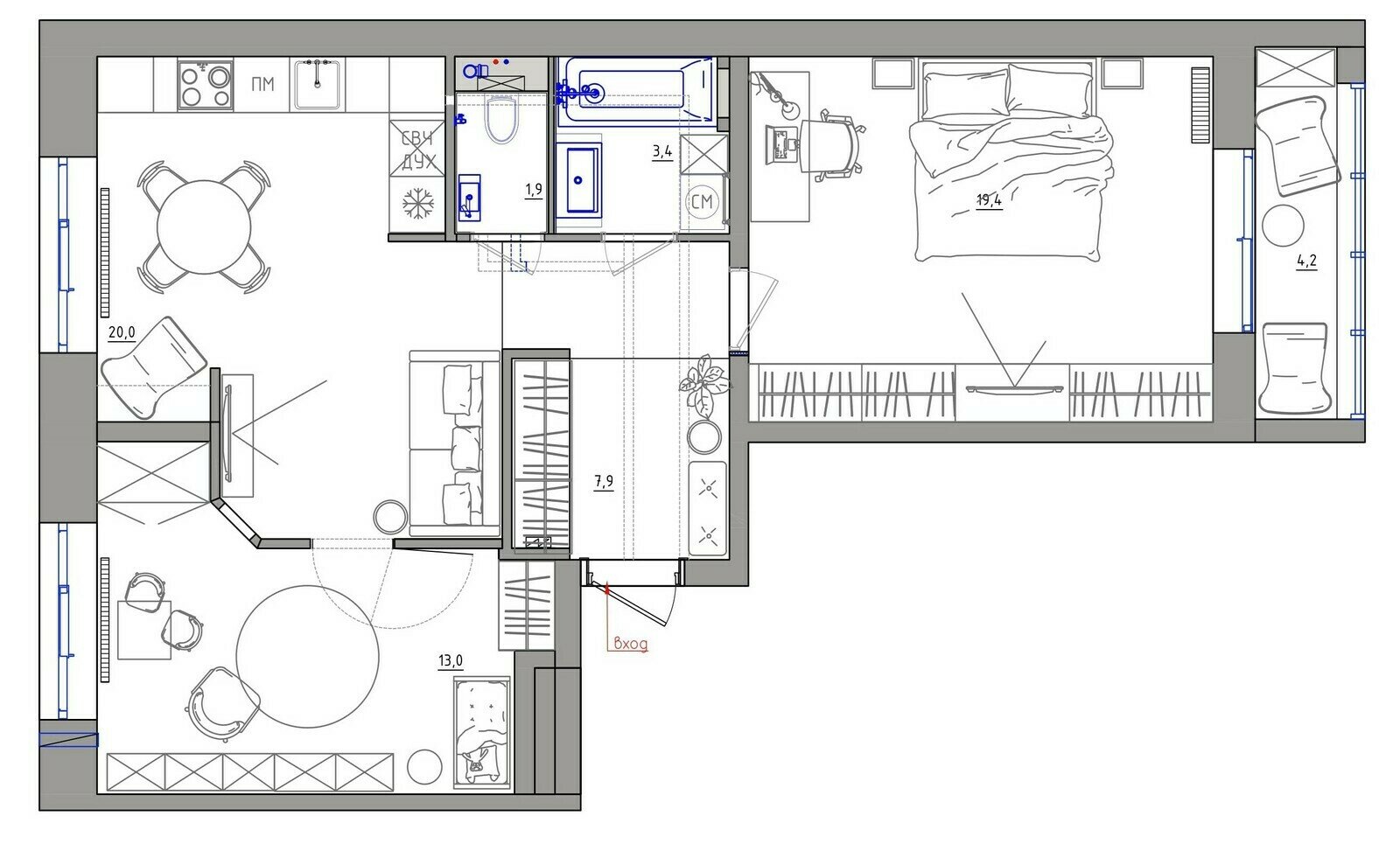 Двушка 65 м² дизайнера с продуманной планировкойДизайн