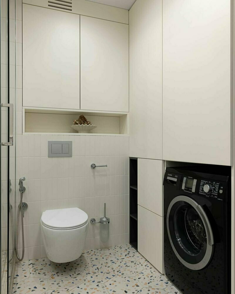 Фотография:  в стиле , Квартира, Интерьер комнат, Советы, интерьер ванной, ванная комната, маленькая ванная, удобная ванная, стиральная машина, где разместить стиральную машину, интерьер ванной комнаты, маленькая ванная комната – фото на INMYROOM