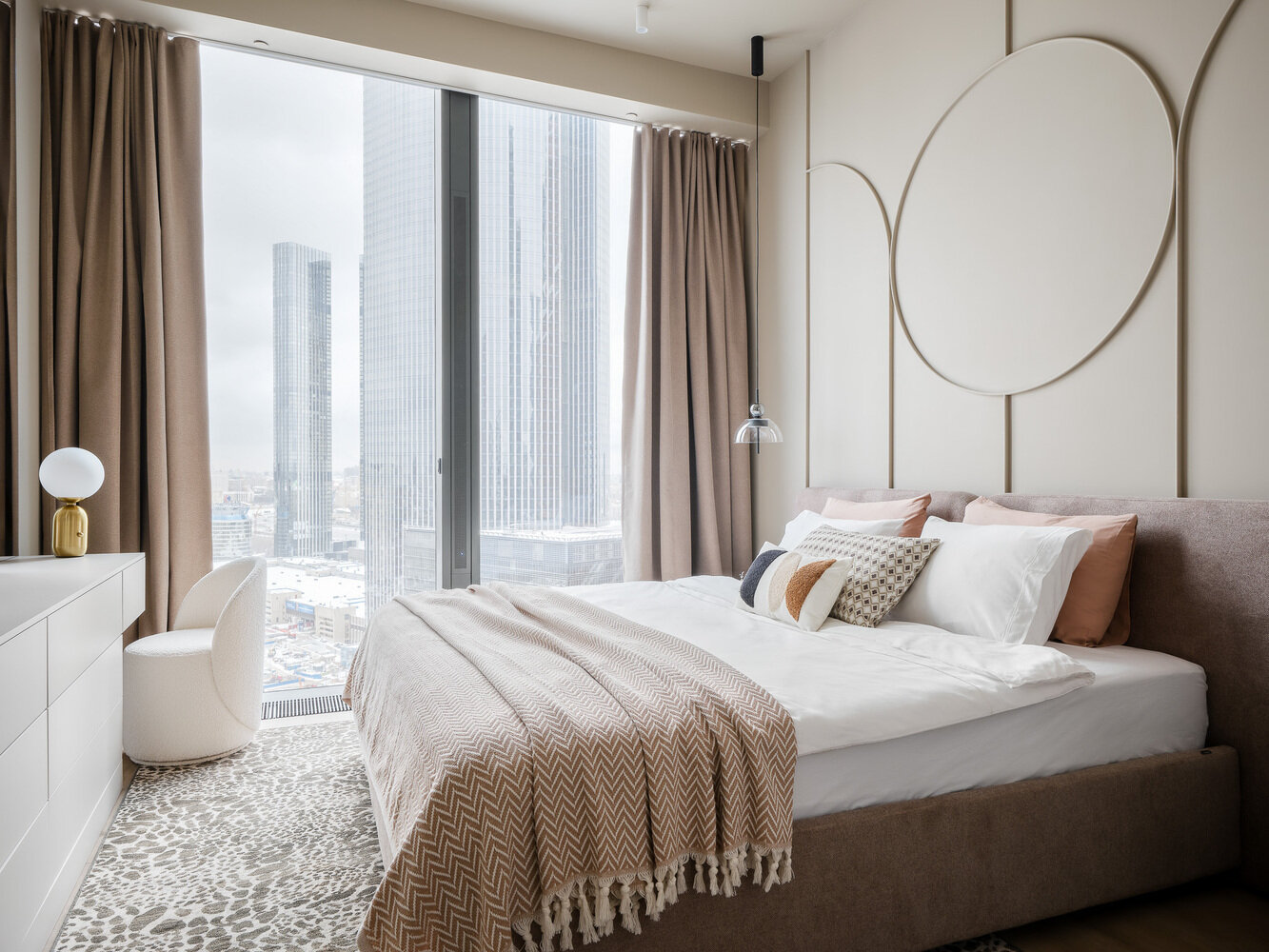 Фотография: Спальня в стиле Современный, Квартира, Проект дня, Москва, 2 комнаты, 60-90 метров, ЖК «Neva Towers», Анна Кожанова – фото на INMYROOM