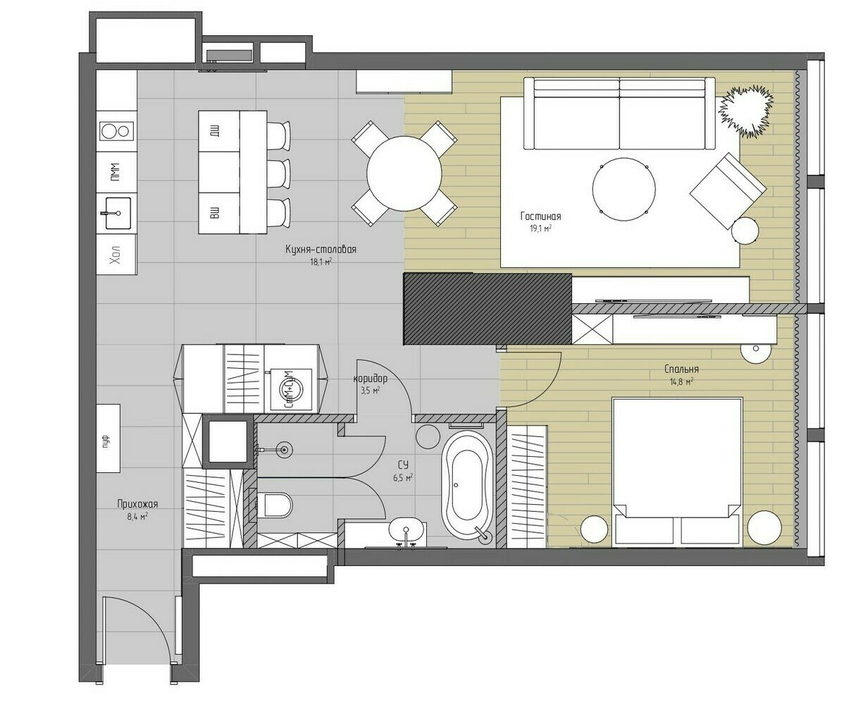 Фотография: Планировки в стиле , Современный, Квартира, Проект дня, Москва, 2 комнаты, 60-90 метров, ЖК «Neva Towers», Анна Кожанова – фото на INMYROOM