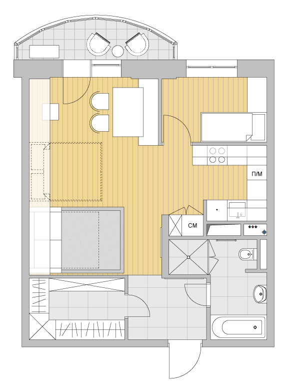Фотография: Планировки в стиле , Перепланировка, как из однушки сделать трешку, Светлана Старцева, Massimos, однокомнатная квартира для семьи, как обустроить однокомнатную квартиру для пары с ребенком – фото на INMYROOM