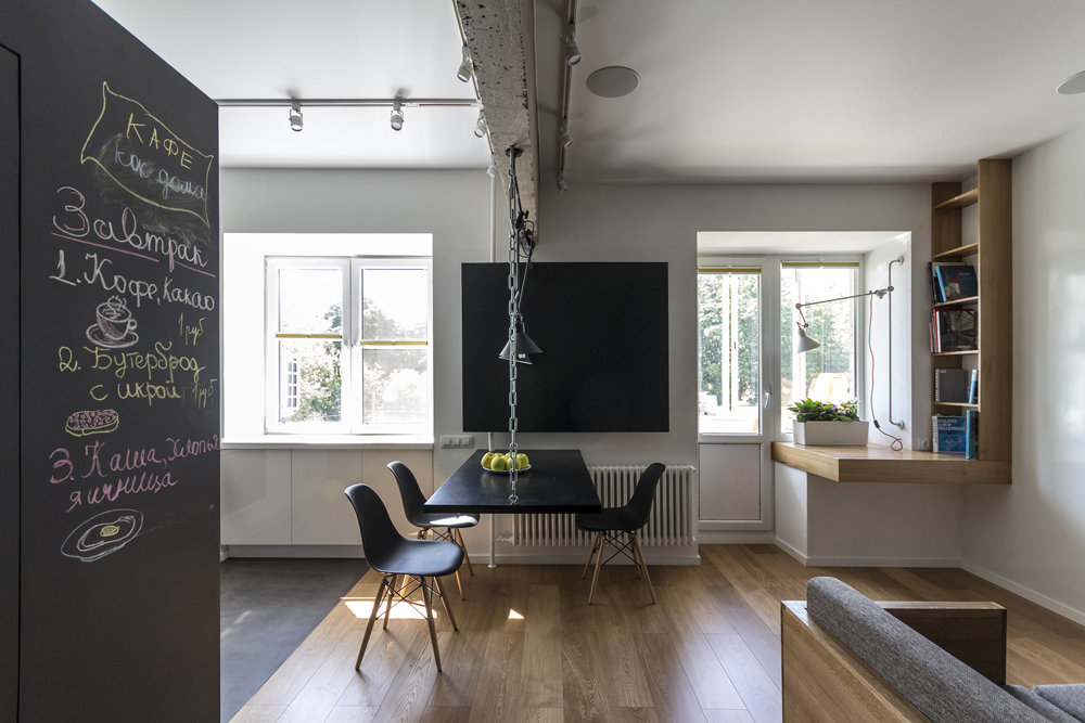 Фотография:  в стиле , Квартира, Россия, Eames, Минимализм, Проект недели, Москва, FLOS, как оформить интерьер в стиле минимализм, Lightstar, Imex, Idea Paint, Дарья Бутахина, Александр Кудимов, Ruetemple, Монолитный дом, 4 и больше, 60-90 метров – фото на INMYROOM