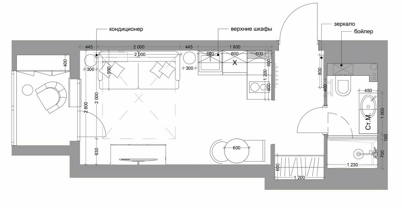 Крошечная студия 20 м² с атмосферой загородного домаДизайн