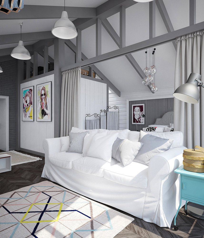Фотография:  в стиле , Детская, Спальня, Дом, Проект недели, Дача, ИКЕА, как обустроить мансарду, дизайн мансарды, Tikkurila, детская комната в мансарде, детская для девочки-подростка, детская с отдельной гардеробной, мансарда с панорамным остеклением, мансарда в скандинавском стиле, детская в скандинавском стиле – фото на INMYROOM