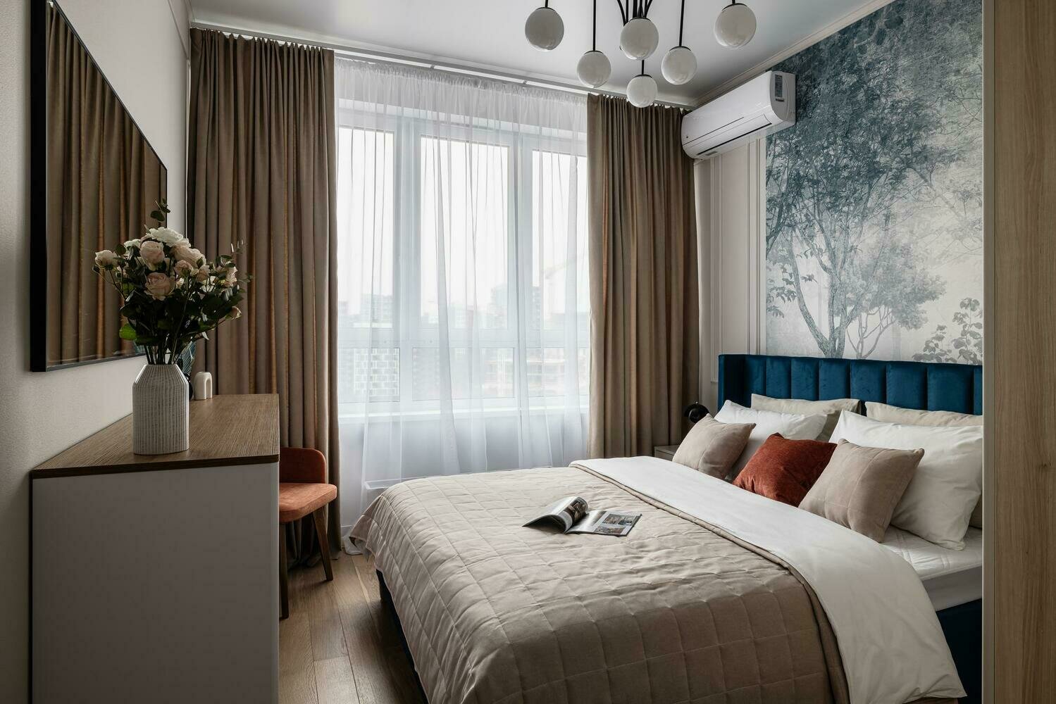 Фотография: Спальня в стиле Современный, Малогабаритная квартира, Квартира, Проект дня, 1 комната, до 40 метров, ЖК «Скандинавия», Ольга Мирзабаева – фото на INMYROOM