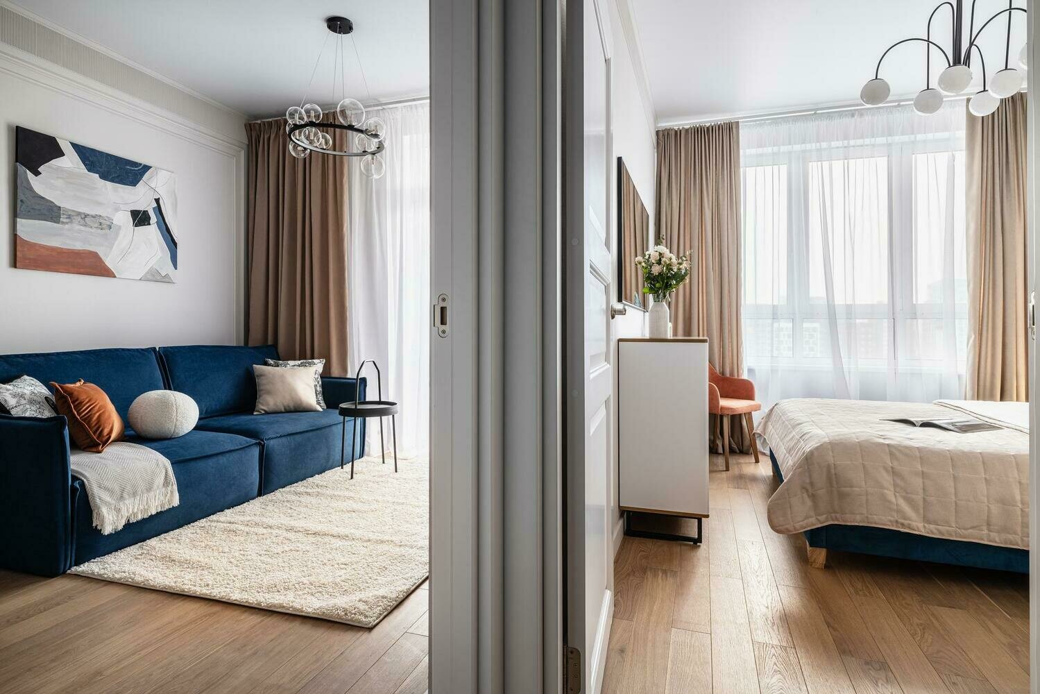 Фотография: Спальня в стиле Современный, Малогабаритная квартира, Квартира, Проект дня, 1 комната, до 40 метров, ЖК «Скандинавия», Ольга Мирзабаева – фото на INMYROOM