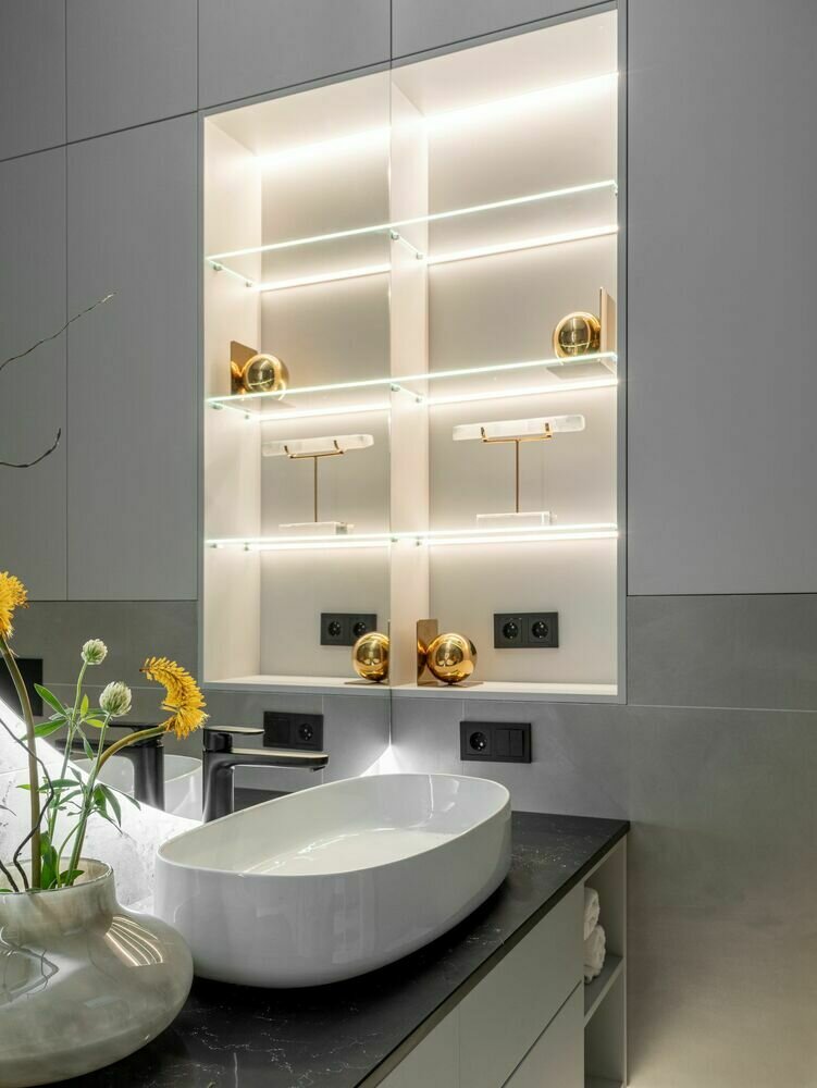 Природные оттенки, фактура камня и дерева: лаконичная трешка 98 м² для молодого человекаДизайн