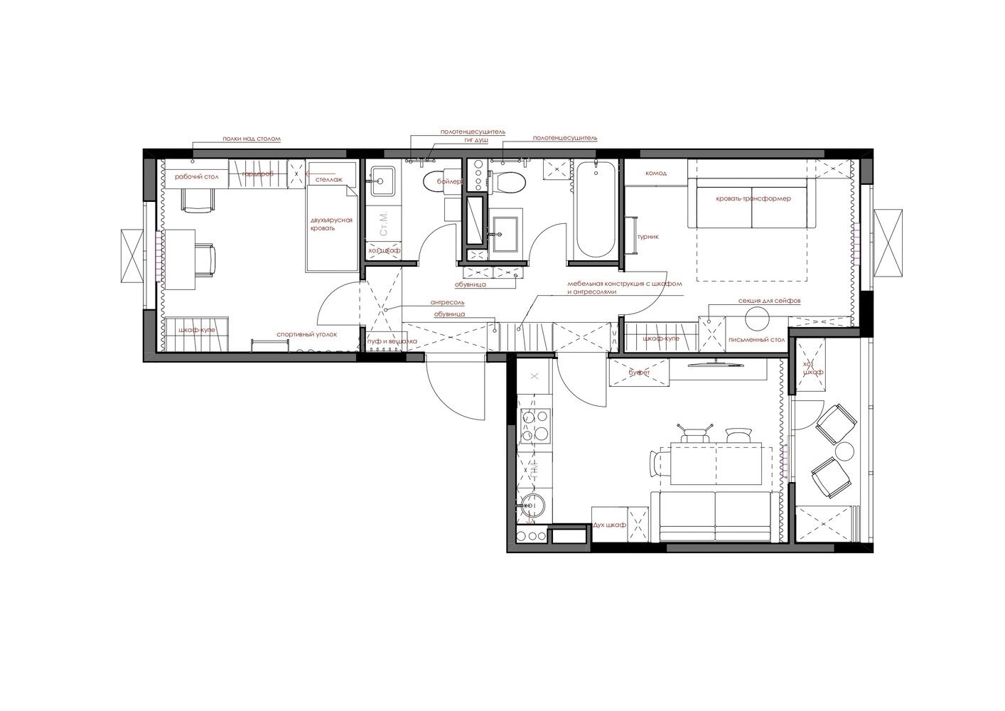 Нет проблем с хранением: 54 м² для семьи с 2 детьмиДизайн