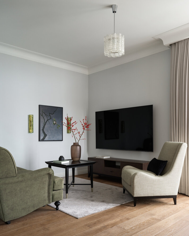 Бра в гостиной выполнены в Мастерской стекла Елены Михеевой (ручная работа).