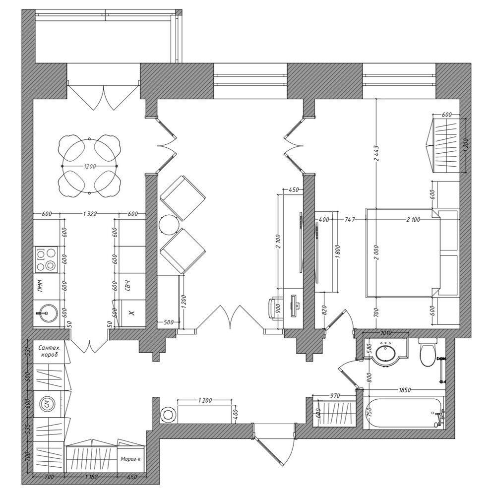 Фотография: Планировки в стиле , Классический, Современный, Квартира, Проект дня, Москва, 2 комнаты, Ирина Киреева – фото на INMYROOM