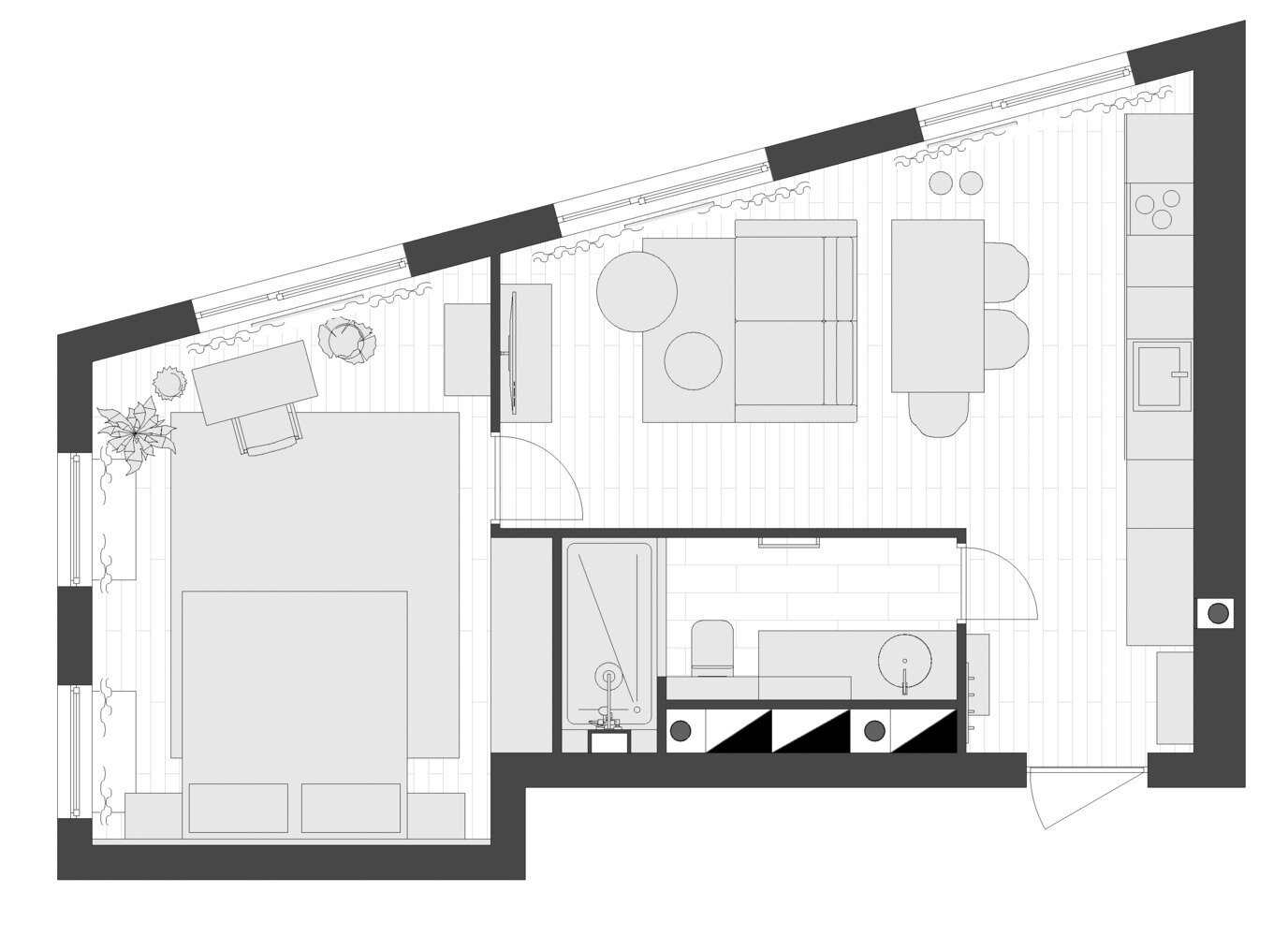 Фотография: Планировки в стиле , Современный, Малогабаритная квартира, Квартира, Проект дня, Москва, 2 комнаты, 40-60 метров, Екатерина Быковская – фото на INMYROOM